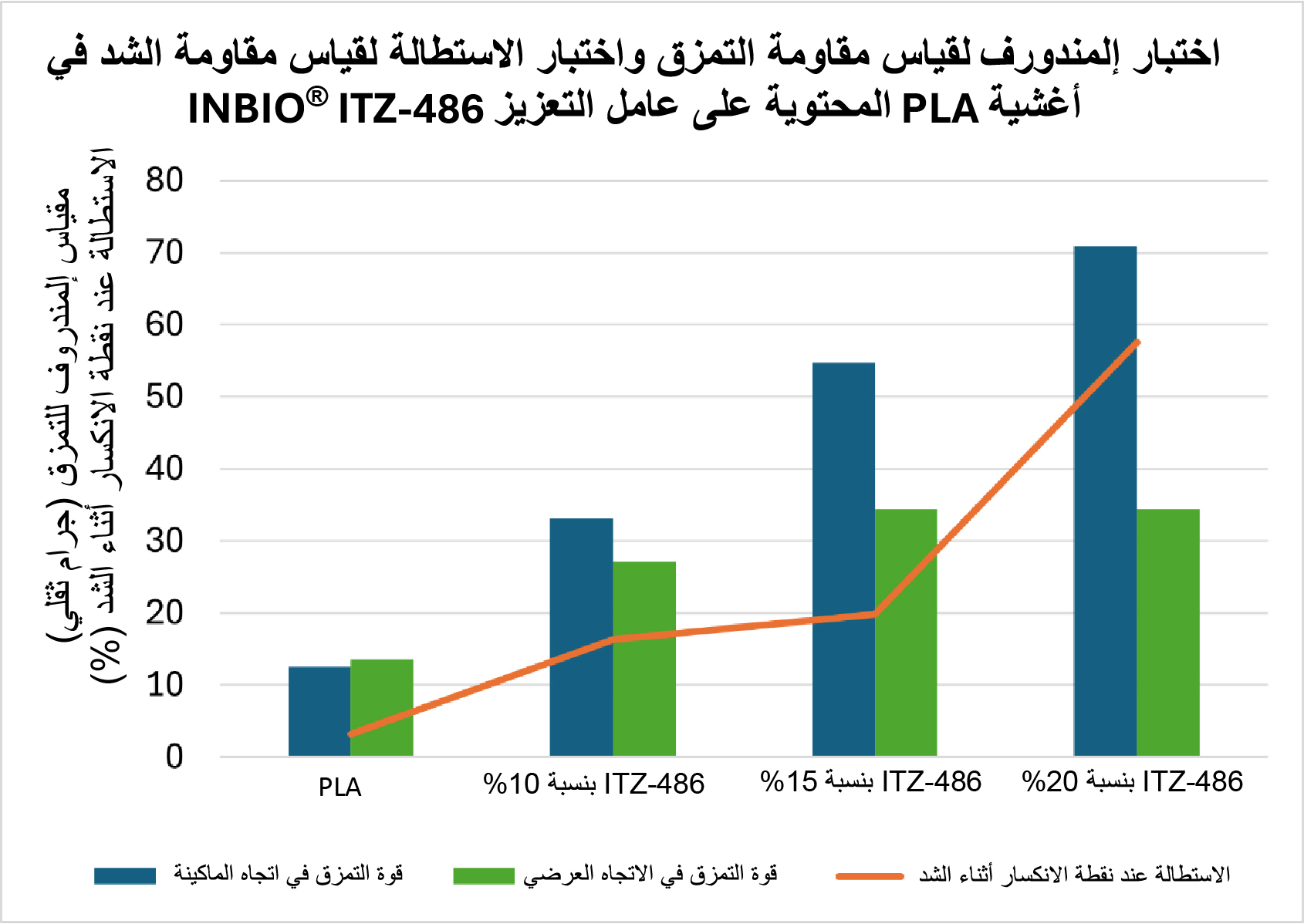 توفر Ingenia مُركَّز بوليمر حيويًّا مزوَّدًا بعامل تعزيز المتانة INBIO® ITZ-486؛ كي يحسِّن خصائص مقاومة التمزُّق والشد في أغشية حمض البولي لاكتيك (PLA) الرقيقة؛ وبذلك يسمح باستخدام PLA في تطبيقات أكثر تنوعًا. الأغشية الموضَّحة بالتفصيل في الدراسة أدناه هي أغشية أحادية الطبقة ذات سُمك قدره 1.5 ميل (mil) ونسبة نفخ (BUR) تبلغ 2.5.